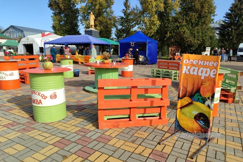 Пока одни с удовольствием разглядывали дела рук пичаевцев, другие во всю угощались в «Осеннем кафе». Специально для фестиваля приготовили три вида каши с тыквой общим объёмом больше 100 литров, а также 50 литров тыквенного сока.