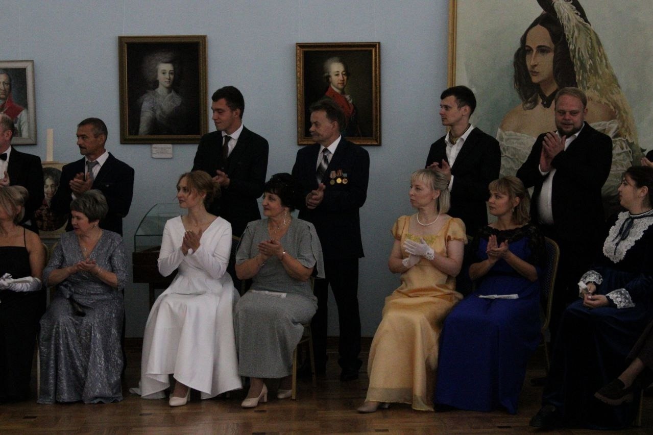 Помимо танцев, в выставочном зале Знаменского краеведческого музея для педагогов провели экскурсию с рассказом об истории рода Загряжских и их связи с Гончаровыми и Пушкиным.