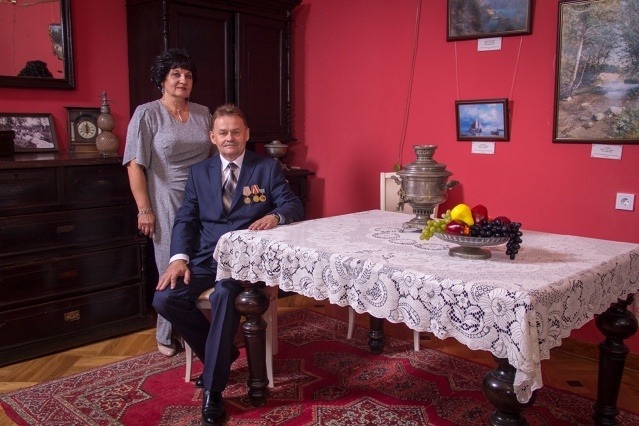 После приветствий каждую пару проводили в выставочный зал, где можно было познакомиться с творческими работами педагогов школ области.