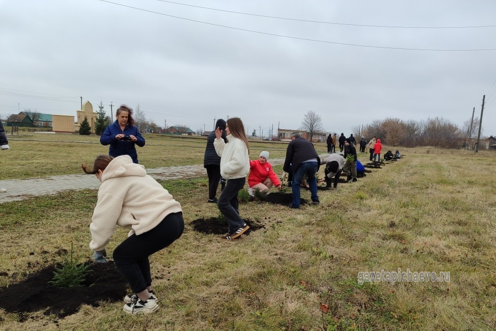 Общими стараниями каждый саженец обрёл своё место. В следующем году такие работы по озеленению на территории возле памятника будут продолжены.