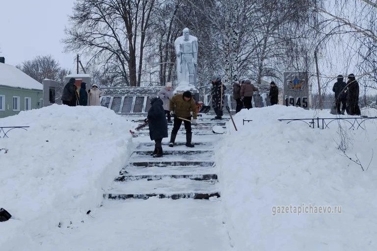 В акции «Снежный десант» 14 января приняли участие активисты «Молодой Гвардии», работники культуры, добровольцы, работники школ, учащиеся и просто неравнодушные люди Пичаевского округа. Они расчистили от снега и наледи территории вокруг воинских мемориалов в сёлах.